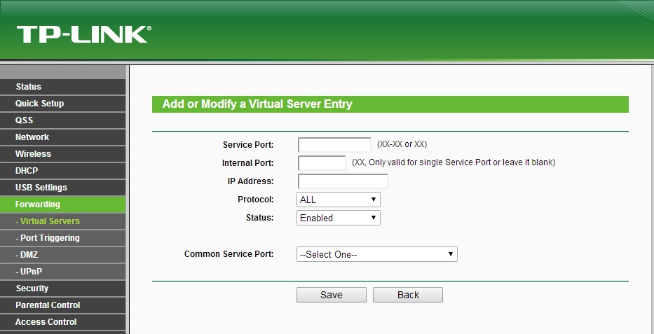 Pada bagian Service Port, masukkan port service di router yang akan di teruskan. Jika kita ingin meneruskan port 8080 dan menjadi http://xx.xx.xx.xx:8080 maka masukkan port 8080