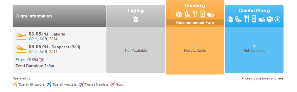 Terlihat disini yang saya highlight merah kode penerbangan RI yang merupakan kode Tigerair Mandala sudah tidak available lagi. Begitu juga dengan penerbangan Singapore (SIN) – Jakarta (CGK)