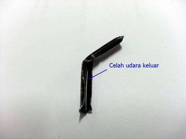 Celah di tengahlah yang membuat udara cepat keluar. Jadi kalo uda ketancep, mau yang tubeless pun pasti angin langsung habis. Kelebihan jaring payung ini juga sepertinya ga akan ketarik alat sweeping ranjau yang polisi punya. Karena bahannya bukan besi dan ngga ketarik oleh magnet!