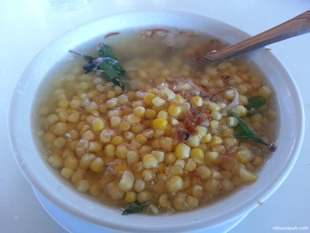 Biasa juga disebut dengan Milu Siram atau kalau dalam bahasa Indonesia biasa disebut Sup Jagung. Nah, makanan ini terdiri dari kuah, jagung, udang, daun kemangi dan ikan. Rasa makanan ini seger banget! Kaldu ikan dan aroma serta rasa daun kemanginya juga bikin makanan ini tambah seger. Kaldu ikannya kuat banget! Ikan yang digunakan di Milu Siram ini Ikan Cakalang atau Ikan Tuna.