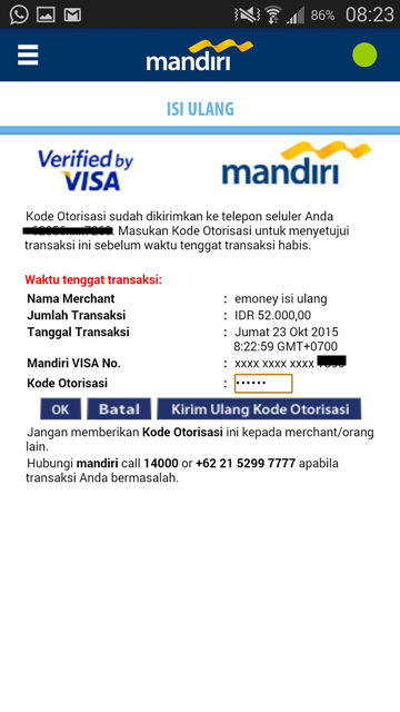 Pengisian berhasil Cukup mudah ya? Salut sama Bank Mandiri bisa menjadi pionir pengisian ulang e-money melalui smartphone di Indonesia. Paling mudah isi ulang e-money itu ya menurut saya cuma Mandiri. Di seluruh ATMnya bisa isi, di alfamart / indomart / merchant juga bisa isi. Sekarang bisa isi kapanpun melalui smartphone. Toppp! 5 bintang buat Bank Mandiri.