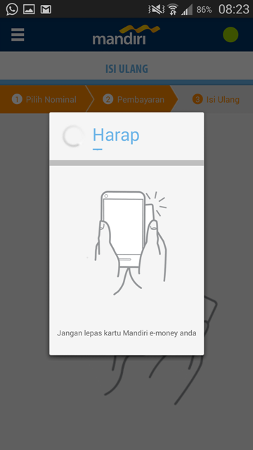 Baru minggu kemarin saya mengetahui kalo sekarang isi ulang Mandiri e-money bisa lewat handphone!! Ga perlu ke alfamart, indomart, ATM ataupun stasiun. Padahal aplikasi ini sudah di launching resmi dari bulan Februari 2015 lalu di Playstore. Nah kalo dipostingan tempo hari tentang cek saldo e-money bisa dilakukan lewat Android yang ber-NFC, kini isi ulangnya pun juga uda bisa! Canggih yak. Apa aja syaratnya?